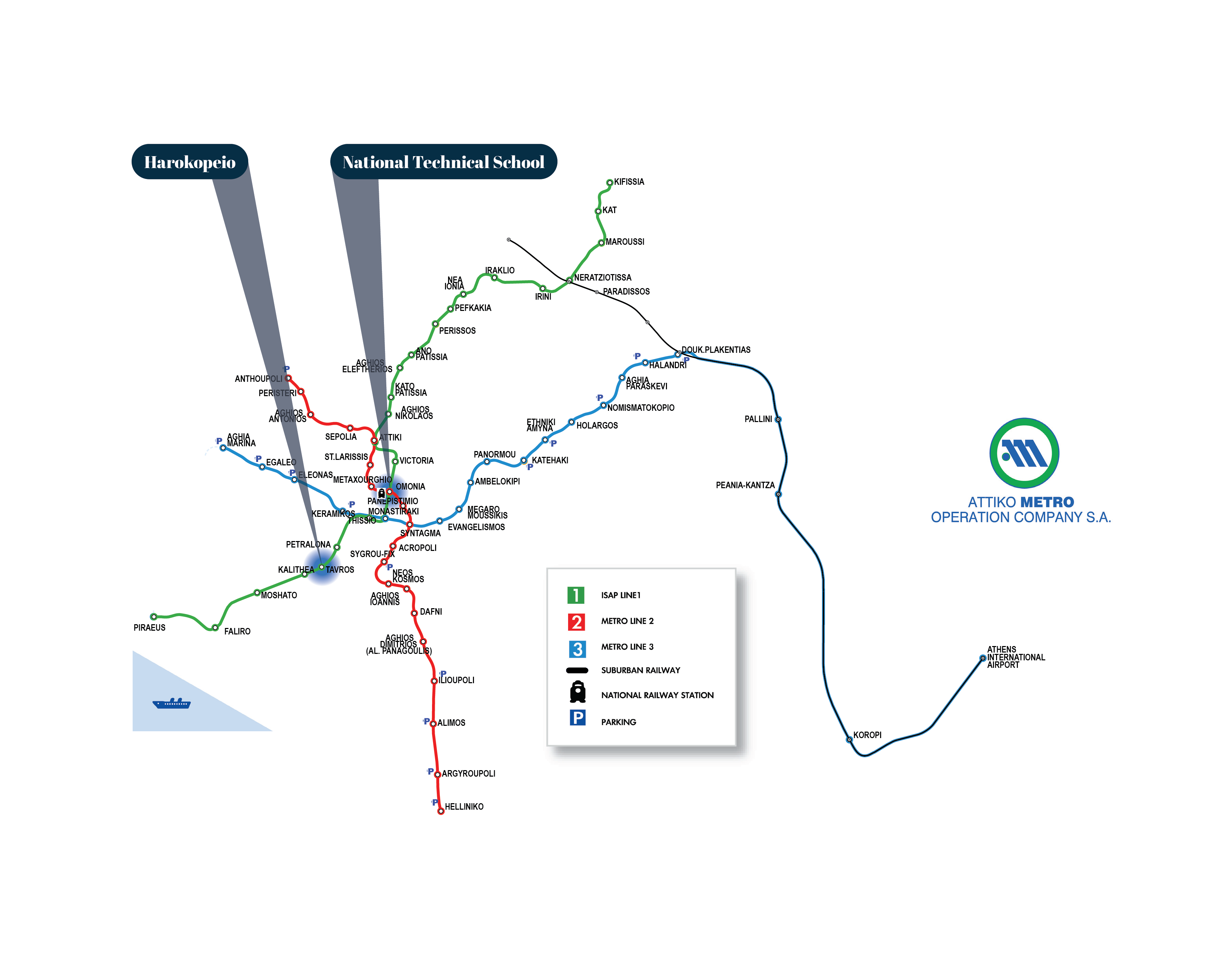 Trolley Bus Line 1: Attikis Square – Kallithea – Moshato or Trolley Bus Line 5: Labrini – Syntagma Square – Jijifies Stops: Karagiannis Stop (at the corner of El. Venizelou Ave. and Evagelistrias St.) or Harokopou Stop (at the corner of El. Venizelou Ave. and Harokopou St.).